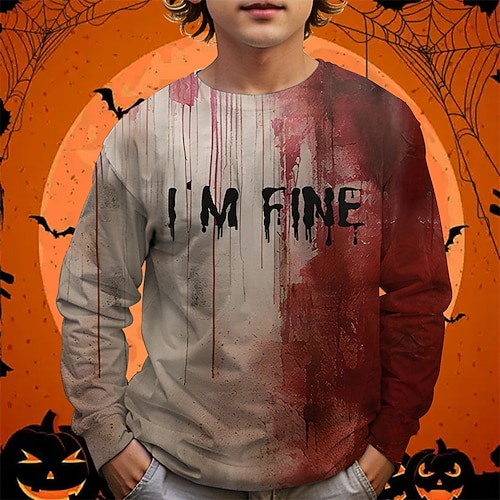Halloween Herren Optische Täuschung Zombies 3D T Shirt Langarm T-Shirt 3D-Druck Rundhalsausschnitt Hemd Mode Übertrieben Straße Lässig Täglich Hellblau Hellgrün Grün Sommer Frühling Herbst Bekleidung