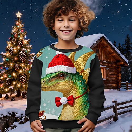 Weihnachten Jungen 3D Dinosaurier Sweatshirt Langarm Frühling Herbst Mode Basic Kinder 4-12 Jahre Rundhalsausschnitt Outdoor Lässig Täglich Normale Passform