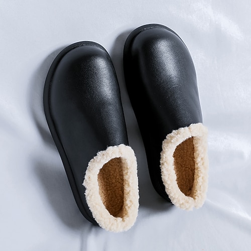 scarpe slip-on da uomo in similpelle nera con fodera in pile: calzature comode e alla moda per il clima invernale, abbigliamento casual e uso domestico
