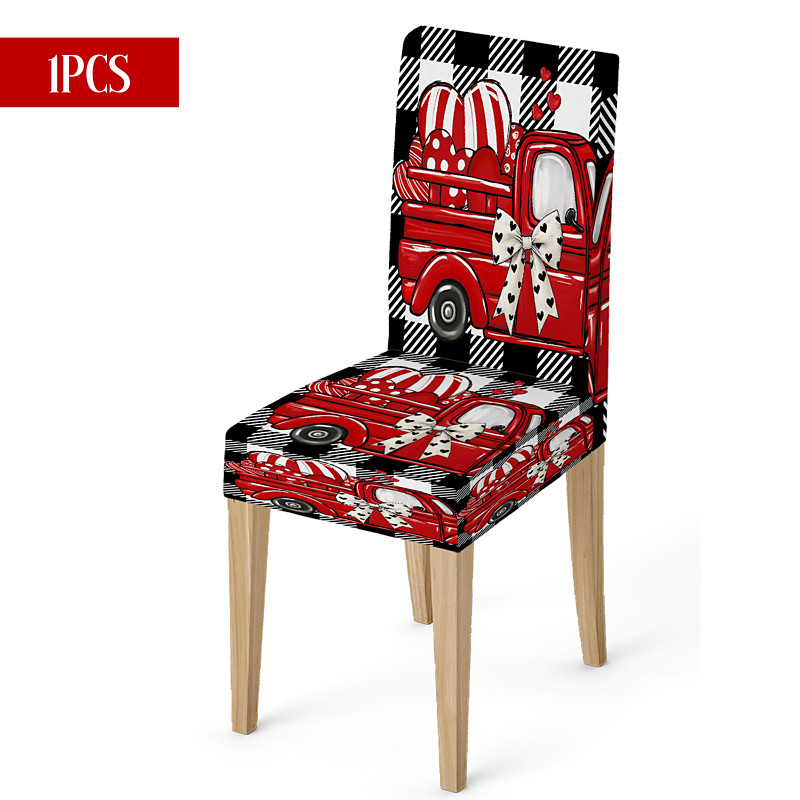 Valentine's Day Stretch Dining Chair Cover Black White Buffalo Check Heart Car Bowknot Chair Back Slipcover Washable Winter Home Restaurant Living Room Kitchen Decor 1/4/6 Pcs