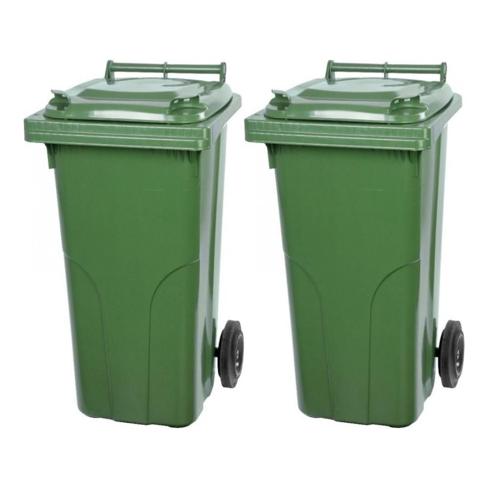 Mega Deal 2x PROREGAL 2-Rad-Mülltonne, 120 Liter, HDPE Kunststoff, Grün, Mülltonne, Müllgroßbehälter, Mülleimer, Abfalltonne, Müllbehälter
