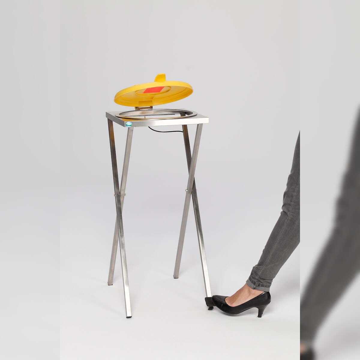 PROREGAL Robuster Scherenständer mit Klemmring | für 120 Liter Sack | HxBxT 90x40x45cm | Edelstahl | Gelber Deckel | Mülleimer Müllsackständer