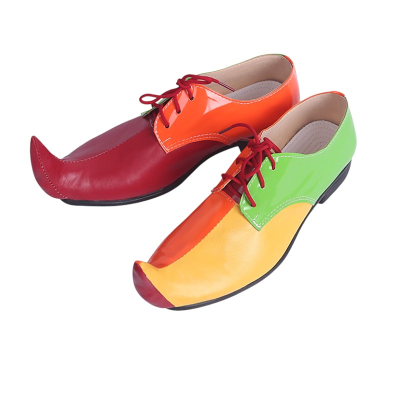 Men's Colorful Clown Shoes with Multi-Color Panels and Red Laces, Fun Playful Style for Carnival and Clown Costumes