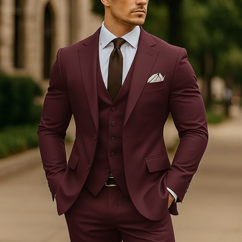 Men's Casual Semi Formal Business Suits Notch Lapel Black Burgundy Daily Business Solid Colored Tailored Fit 3 Piece Single Breasted Two-buttons