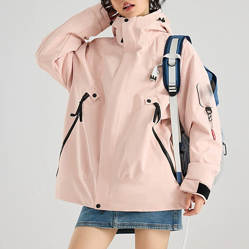 Women's Hoodie Jacket Waterproof Warm Zipper Pocket Fashion Solid Color Outdoor Street Going out Zipper Regular Hooded Regular Fit Long Sleeve Outerwear Black White Pink Fall Winter