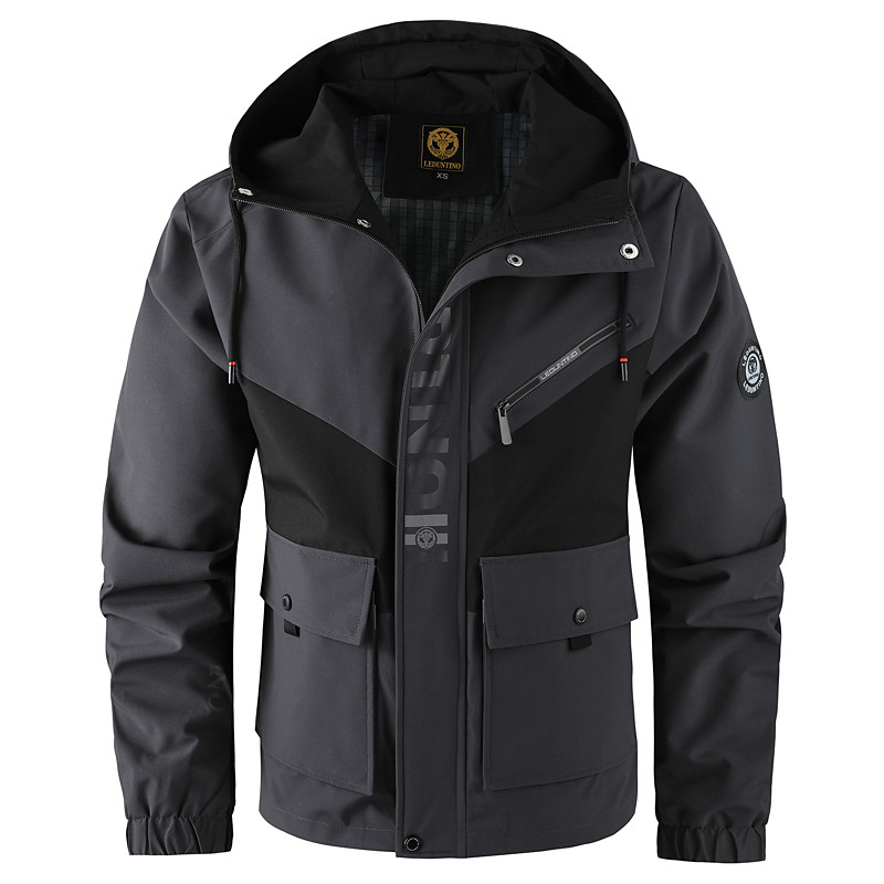 Men's Outdoor Jacket Softshell Jacket Transition Jacket Rain Jacket Training Sports Outdoor Waterproof Windbreaker Pocket Drawstring Fall Winter Solid Color Casual Military Style Stand Collar Regular