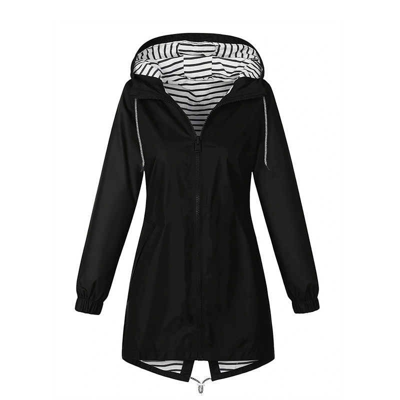Women's Trench Coat Waterproof Rain Jackets Rain Coats Waterproof Windproof Zipper Pocket Fashion Outdoor Plain Going out Weekend Zipper Regular Hooded Regular Fit Long Sleeve Outerwear Black White