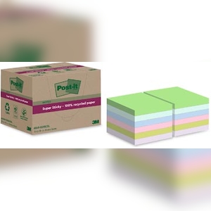 Post-it Haftnotiz Super Sticky Recycling Notes 47,6x47,6mm 70 Blatt sortiert VE=12 Blöcke