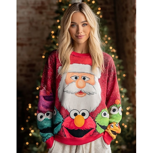 maglione natalizio da donna con grafica e pupazzo di neve, brutto Natale, caldo, classico, casual, manica lunga, girocollo, girocollo, normale, top, casa, strada, abbigliamento quotidiano, stampa,