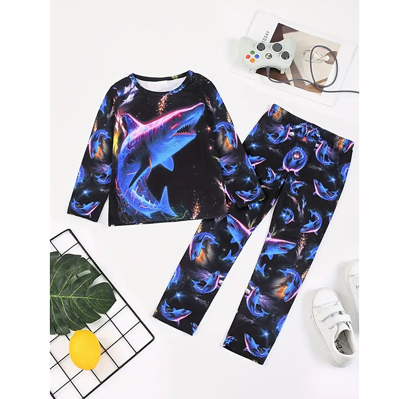 Boys 3D Graphic Shark Pajama Sets Tee Pants Pajama Sets Long Sleeve 3D Print Fall Winter Active Basic Kids 4 years Crew Neck Home Daily Regular Fit