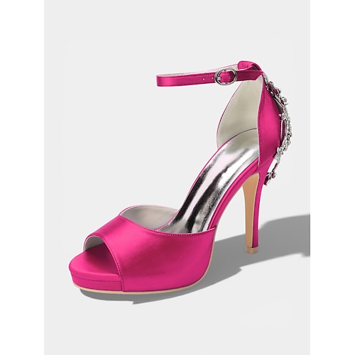 scarpe da sposa eleganti in raso con tacco a spillo, punta a punta, cinturino posteriore con fiocco, per la sposa che si sposa in chiesa