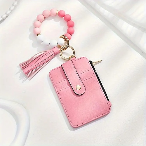 portachiavi da polso, braccialetto, portafoglio, portachiavi con perline in silicone, braccialetto con perline in silicone, portachiavi, portafoglio, portachiavi elastico