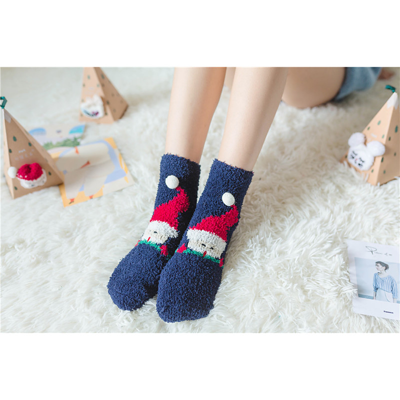 Christmas Women's Slipper Socks, Cartoon Coral Fleece Plush Crew Socks, Mid-Calf Fluffy Floor Socks, Christmas Holiday Cross-Border Edition