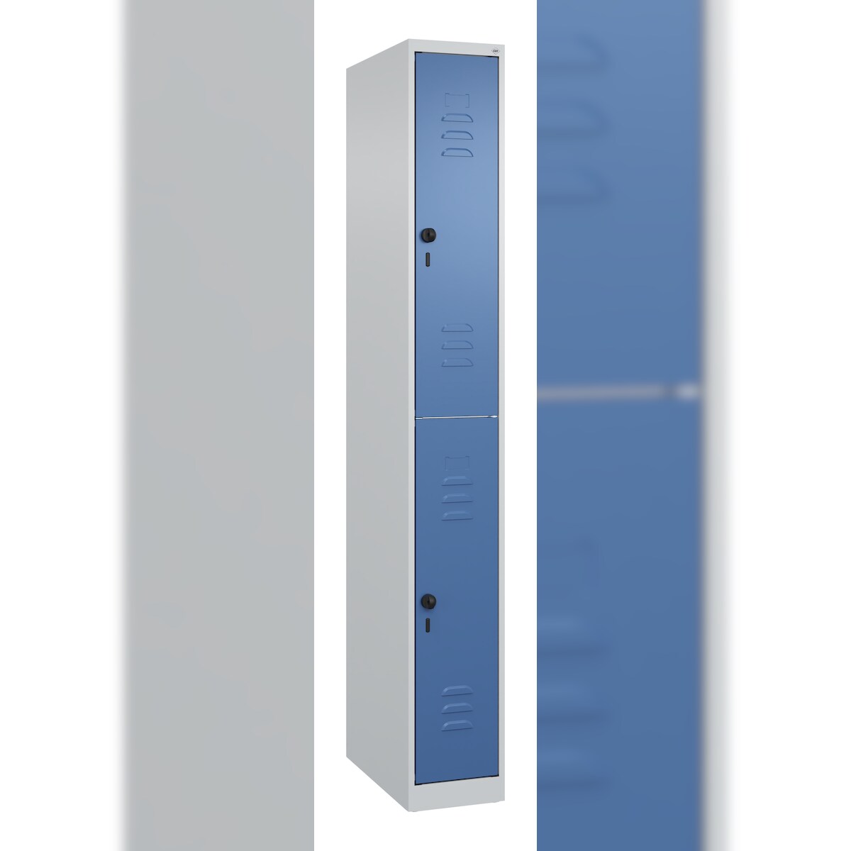 C+P Spind Classic PLUS, 2 Abteile, HxBxT 185x25x50cm, Sicherheitsdrehriegel, Hellgrau/Fernblau von PROREGAL