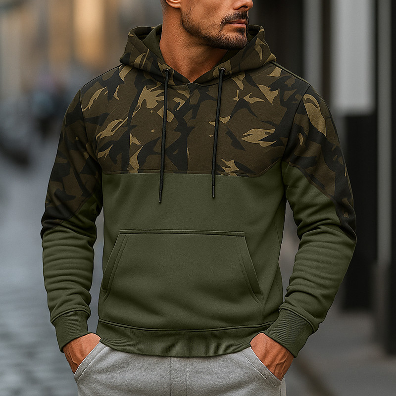 Men's Hoodie Pullover Hoodie Sweatshirt Fleece Hoodie Black Army Green Hooded Camouflage Patchwork Color Block Sports Outdoor Casual Daily Streetwear Cool Sportswear Spring Fall Clothing Apparel