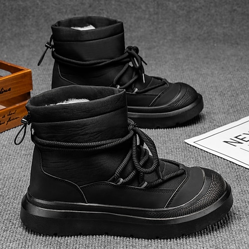 stivali invernali impermeabili neri da uomo con fodera in pelliccia: calzature resistenti e isolanti per il freddo, le attività all'aperto e le condizioni nevose