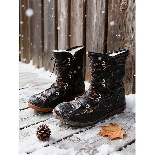 stivali invernali da donna in pelle rossa con trazione migliorata – stivali a metà polpaccio adatti a tutti i terreni per avventure all'aria aperta, escursionismo e sport invernali