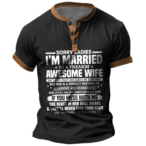 Herren Henley T-Shirt Humorvolles 'Entschuldigung Damen Ich Bin Mit Einer Tollen Frau Verheiratet' Grafik Kurzarm Beziehungsgeschenk