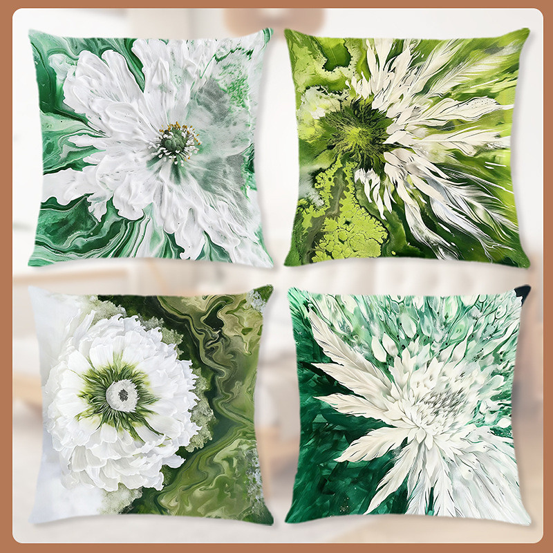 Green Nature Floral Series Abstract Digital Print Short Plush Pillow Covers Decorative Cushion Case for Sofa Bedroom Office Car Home Decor
