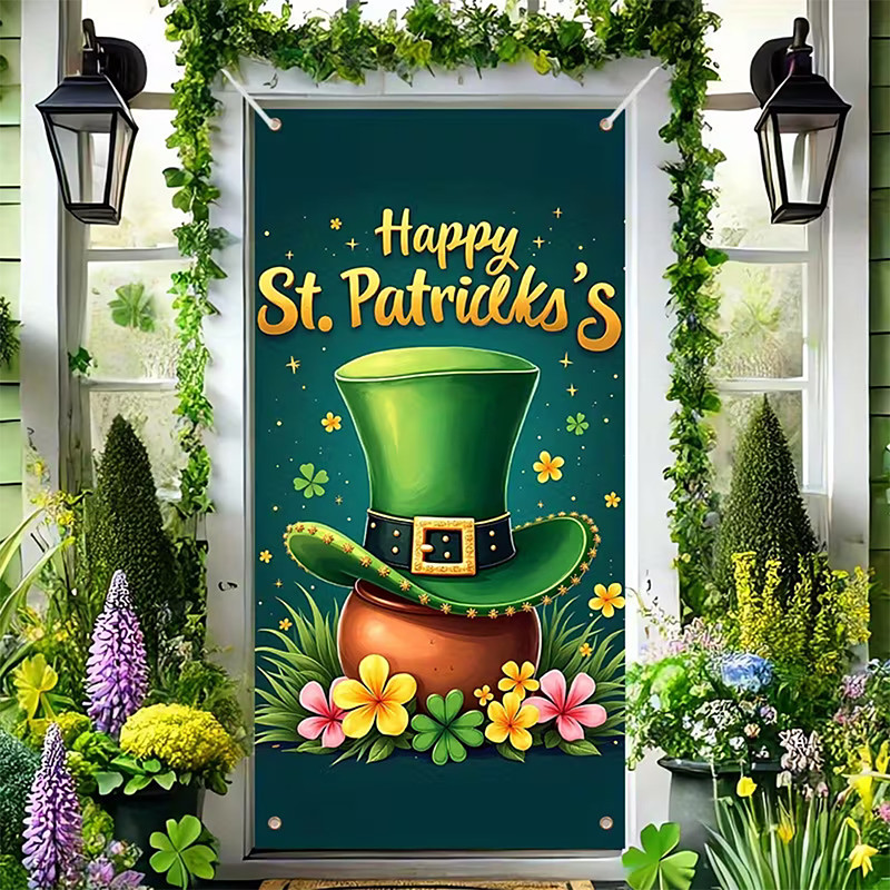 St. Patrick's Day Posters Door Cover Outdoor Banners Green Hat Shamrock Cute 3D Fantasy Party Dorm Teens Room College Dorm Guys Man Cave Frat Bedroom Shooting Backgrounds Home Decor