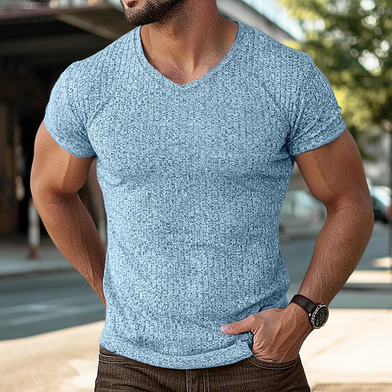 Men's Color Block Tee Short Sleeve Shirt Muscle Shirt Ribbed Knit tee Short Sleeve V Neck Summer Spring Summer Solid Color Pit Strip Sports Daily V Neck Outdoor Casual Black White Blue Top Tee for