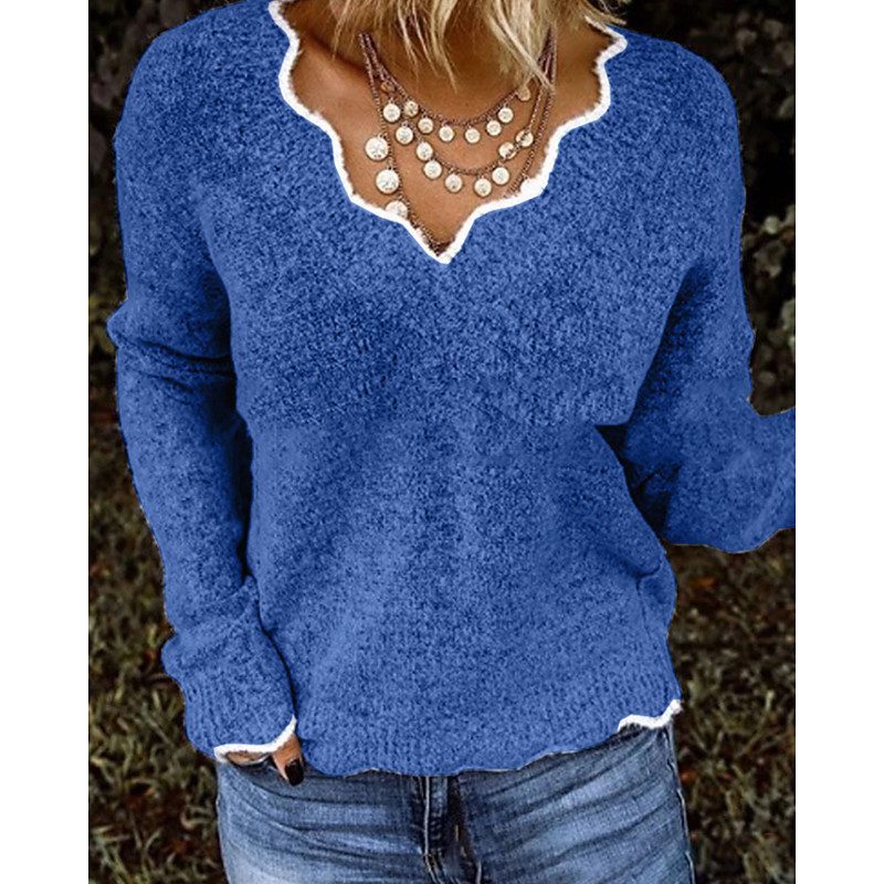 Women's Sweater Pullover Streetwear Casual Color Block V Neck Patchwork Knitted Long Sleeve Regular Tops Knit Daily Holiday Going out Black Pink Fall Winter