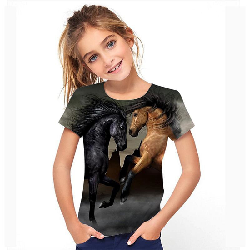 Girls' 3D Graphic Horse T shirt Tee Short Sleeve Summer Spring Fashion Basic Kids 4-12 Years Crew Neck Casual Daily Outdoor Regular Fit