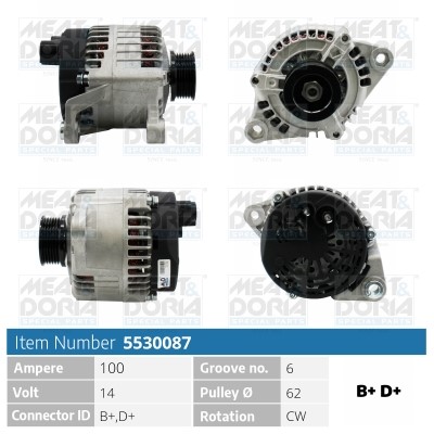 Laturi 14V 100A Meat & doria 5530087 - citroën, fiat - OE 46420966, 46430111, 46434933