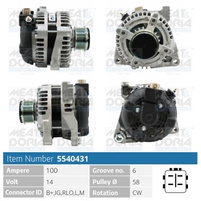 Laturi 14V 100A Meat & doria 5540431 - toyota auris, corolla sedan, yaris - OE 27060-0N040, 27060-0N050, 27060-33100
