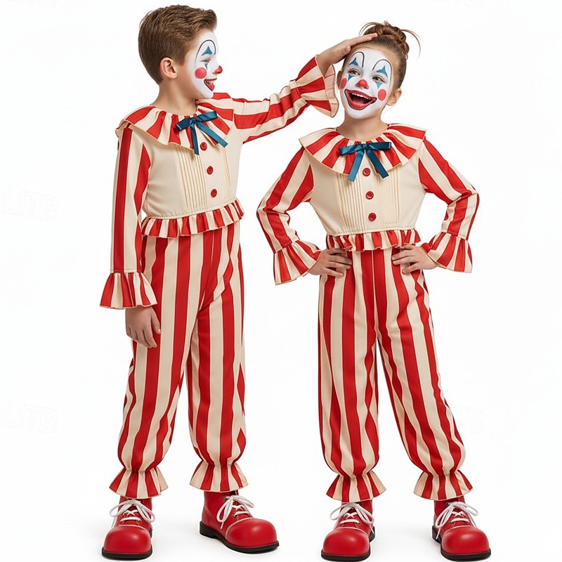 Carnival Costume 2026 Joker Clown Carnival Costume Jumpsuit Clown in a Cornfield Horror Scary Costume Kid's Unisex Boys' Girls' Halloween Carnival Party Easy Carnival Costume Dress Up