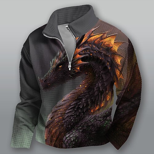 Per uomo Drago Stampa 3D Nido d'ape Felpa Moda Quotidiano Casual Fantasia Collo alla coreana Zip a un quarto All'aperto Casa Ufficio Lavoro Giallo Blu Viola Verde Con zip Autunno Inverno progettista