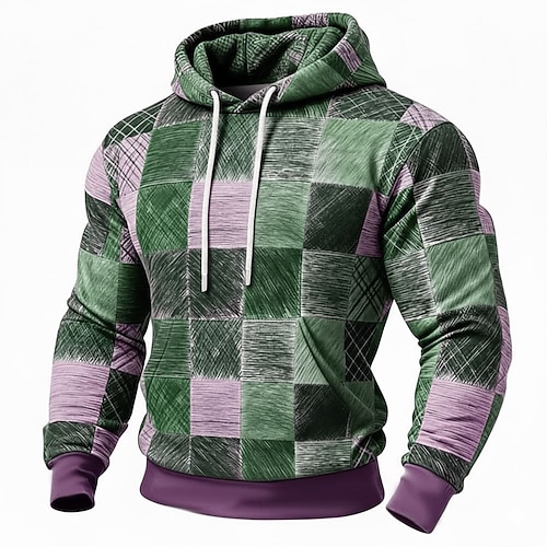 Per uomo Geometrico Plaid Nido d'ape Felpa Moda Quotidiano Classico Casual Collo alla coreana Zip a un quarto All'aperto Casa Ufficio Lavoro Blu Viola Verde Cachi Con zip Autunno Inverno progettista