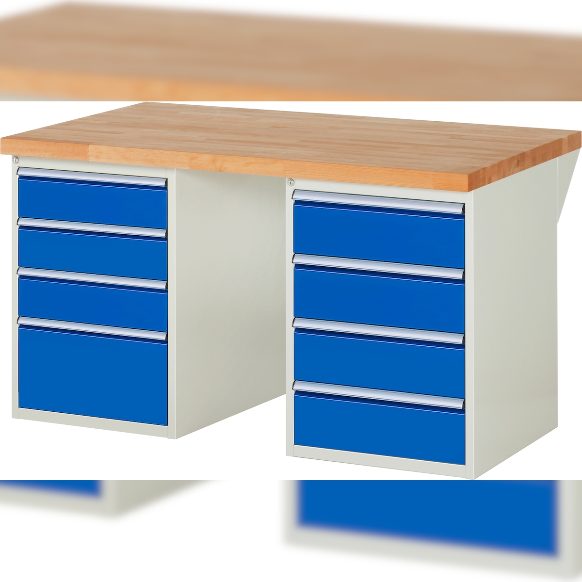 PROREGAL Werkbank Serie 7000 - Modell 7820 | HxBxT 84x150x90cm | 8x Schublade | Schubladenmaße 3x150 + 4x180 + 1x270mm