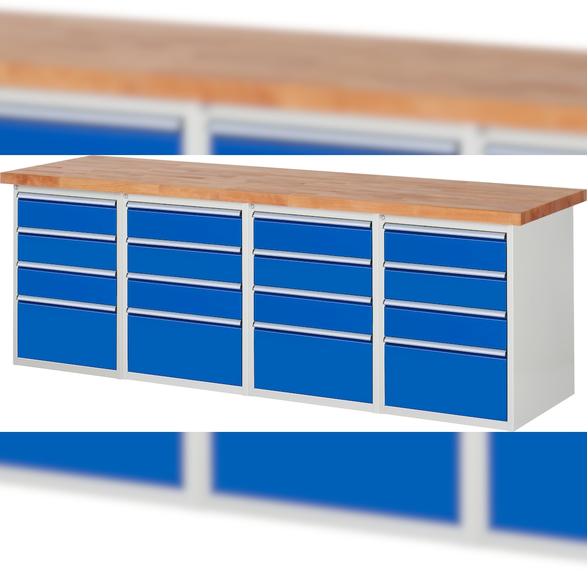 PROREGAL Werkbank Serie 7000 - Modell 7510 | HxBxT 84x250x70cm | 16x Schublade | Schubladenmaße 12x150 + 4x270mm | Lichtgrau | Arbeitstisch Werktisch
