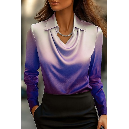 Per donna Camicia Ombre Grafico Geometrico Elegante Moderno Casual Manica Lunga Scollo a Cascata Top Regolari Lavoro Abbigliamento da sera Quotidiano Arricciato Drappeggiato Bianco e blu Blu Viola