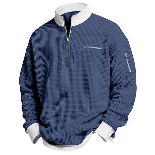 Per uomo Maglietta Waffle Maglietta Manica Lunga Mezza zip Primavera Autunno Inverno Tinta unica Tradizionale / Vintage Casual Blocco di colore Tasca con cerniera All'aperto Casa Sport Outdoor
