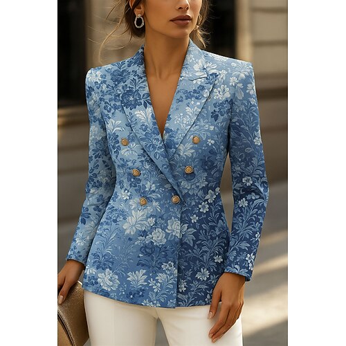 Per donna Blazer Caldo Confortevole Bottoni Vintage Moda Classico Moderno Floreale Formale Vacanza Casa Casuale Doppiopetto Regolare Bavero classico Vestibilità regolare Manica Lunga Capispalla Blu