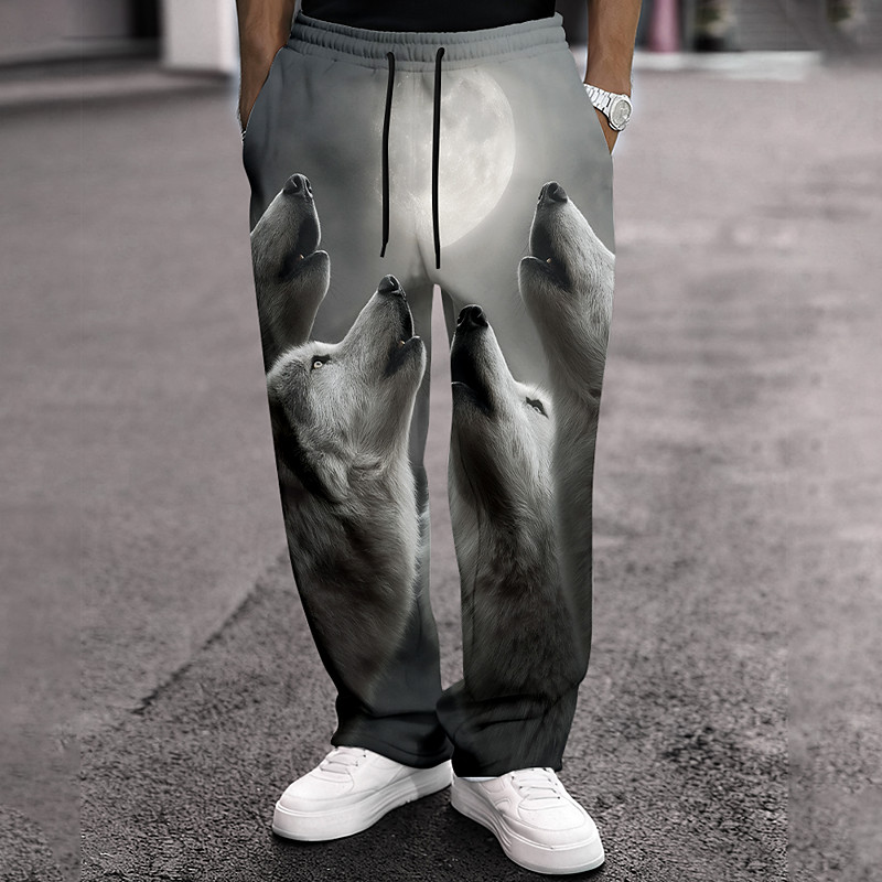 Men's Animal Wolf Moonlight Sweatpants Trousers Casual Pants Mid Waist Vintage Retro Outdoor Hunting Workout Elastic Drawstring Waist Straight Leg Pants with Pockets Spring Fall 3D Print Blue Gray