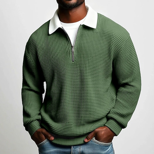 Per uomo Magliette Polo a Nido d'Ape Testurizzato Uscire Palestra Collo ripiegato Zip a un quarto Manica Lunga Abbigliamento Sportivo Casual Tinta unica Tartan Patchwork Cerniera Autunno Inverno
