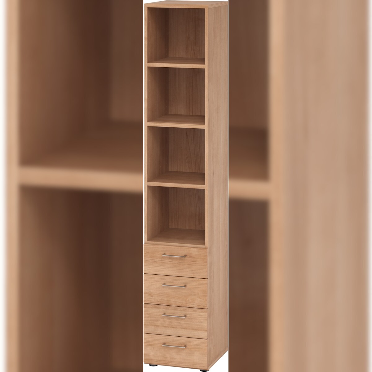 bümö smart Schubladenschrank, Büroschrank 80cm breit in Weiß/Buche mit 4 Schüben & 4 Regalfächern - Bürocontainer aus Holz, Container mit