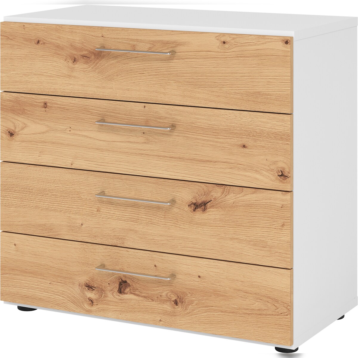 bümö smart Schubladenschrank, Büroschrank 80cm breit in Weiß/Asteiche mit 4 Schüben - Bürocontainer aus Holz, Container mit Metallgriffen & Soft-Stop