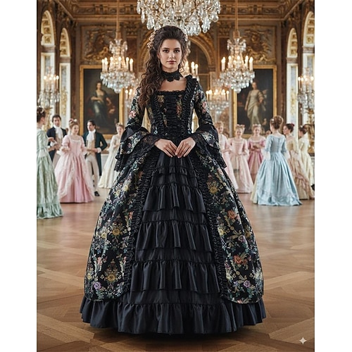 Rococò Vittoriano Abito da cocktail Lunghezza al pavimento Lunghezza lunga Vestito Costume da festa Costume Taglie Forti Manica del polsino svasato Principessa Piazza Costume Per donna Reale