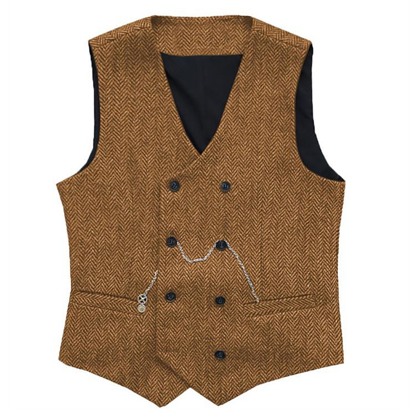 Men's Vest Waistcoat Gilet Vacation Daily Wedding Party Date Fashion Casual Spring Fall Buttons Pocket Polyester Comfortable Plain Double Breasted V Neck Regular Fit Silver Black Red Burgundy Vest