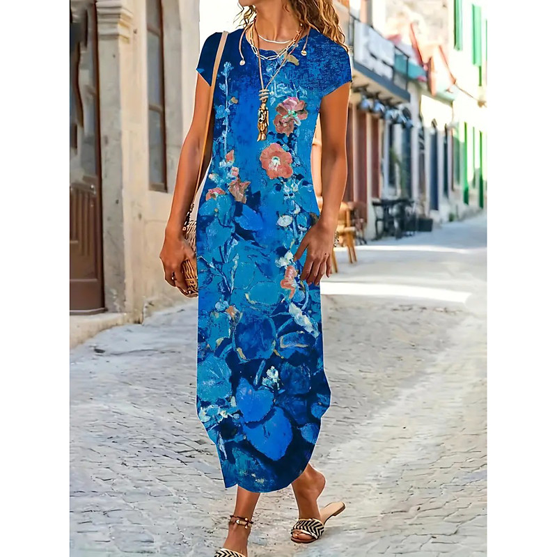 Women's Long Dress Maxi Dress Casual Dress Summer Dress Fashion Modern Daily Date Weekend Regular Fit Floral Geometric 3/4 Length Sleeve Crew Neck Blue Pink Red Khaki Summer