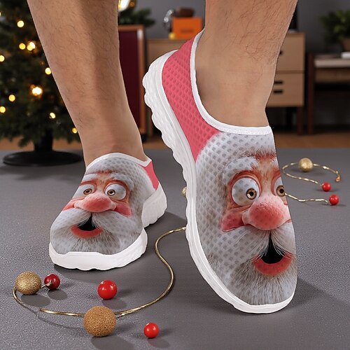 Sneakers slip-on da uomo con stampa di Babbo Natale, scarpe casual leggere e traspiranti per feste, abiti festivi e regali invernali