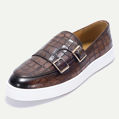mocassini da uomo in vera pelle con motivo coccodrillo e doppia fibbia – scarpe eleganti slip-on di lusso per lavoro, matrimoni e occasioni formali