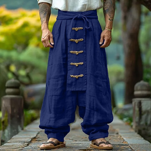 Per uomo Pantaloni di Lino Pantaloni Pantaloni Estivi Pantaloni Larghi Bottoni Coulisse Elastico in vita Semplice Comodità Traspirante Lunghezza intera All'aperto Yoga Palestra Designer Retrò Vintage