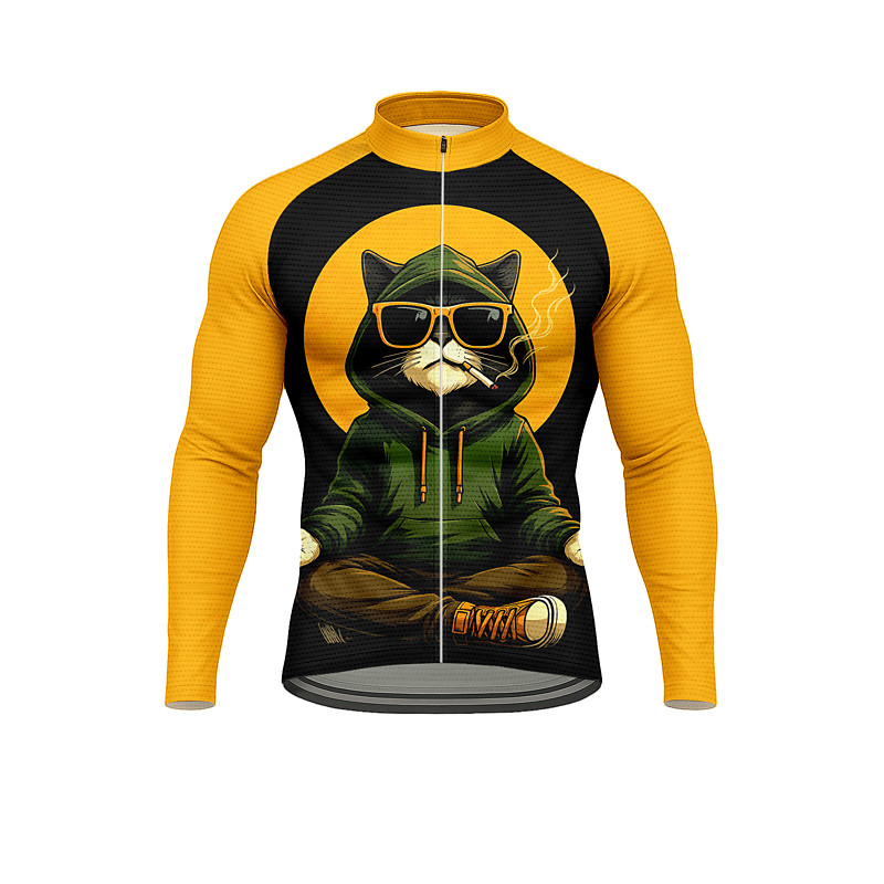 Men's Tops Cycling Jersey Animal Cat Long Sleeve Bike Jersey Top with 3 Rear Pockets Sun Sun Protection Sunscreen Quick Dry Sports Black Clothing Apparel