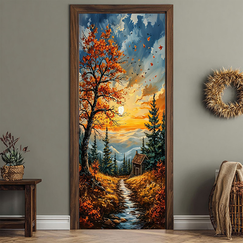 Landscape Door Decorations Door Covers Forest Tree Door Tapestry Door Curtain Decoration Backdrop Indoor/Outdoor Door Banner for Front Door Farmhouse