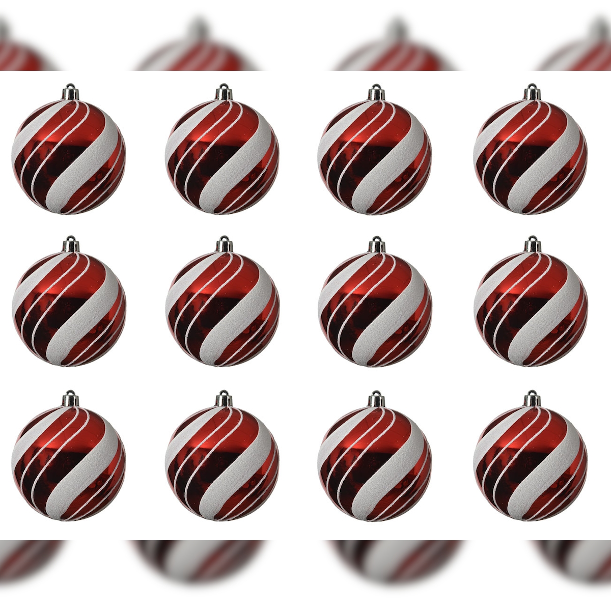 12 Weihnachtskugeln 8cm Kunststoff mit Streifen Muster Christbaumkugeln rot weiß